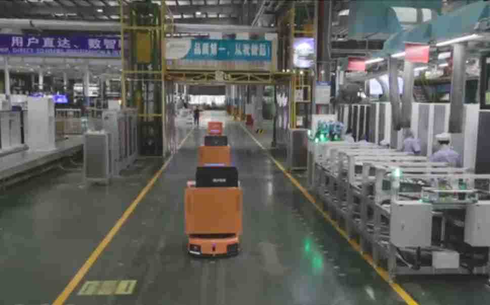 为车载冰箱物流配送打造的智能解决方案,,,,包含产中物流通过潜伏举升AMR搬运至线边,,产后成品物流智能仓储,,,,流程包含产中物流智能齐套入库,,线边安灯叫料AMR智能配送至线边,,,成品入库、、、出库,,,,通过无人堆高车机器人,,,,智能仓储管理替代人工作业管理,,,,实现更高存储、、、更高效率、、更具柔性化的解决方案。。。。